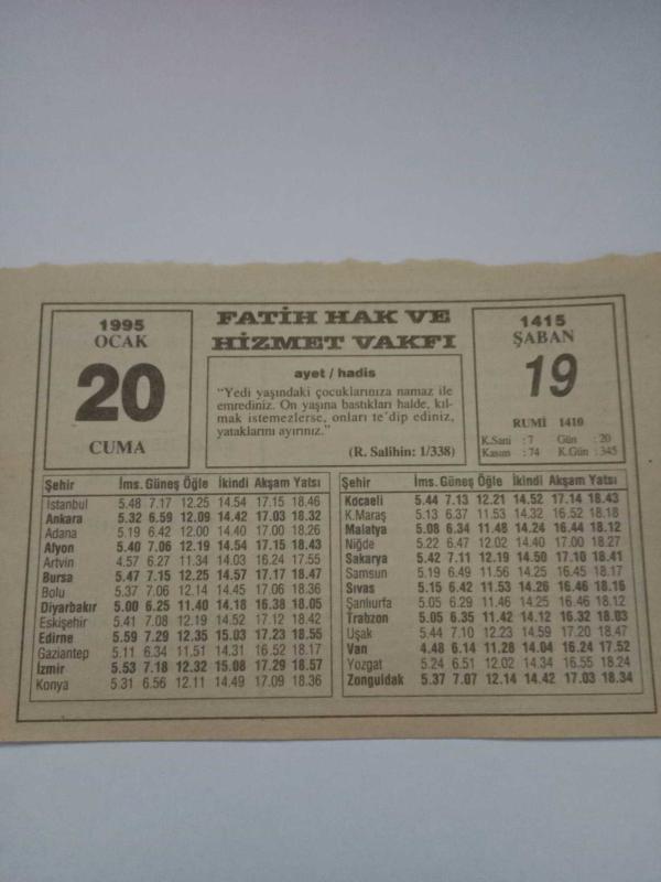 20 Ocak 1995-Orijinal Takvim Yaprağı-Doğum Günü-Söz,Nişan,Nikâh,Düğün ve Önemli Günler Hediyesi-Fatih Hak ve Hizmet Vakfı-Ayet/Hadis(R.Salihin:1/338)-Ziyaret Adabı-Sadi-Süngerler Tıbbın Hizmetinde, en son 5 ay önce güncellenmiştir.