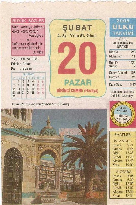 20 ŞUBAT 2005 ÜLKÜ TAKVİM YAPRAĞI, en son 1 yıl önce güncellenmiştir.