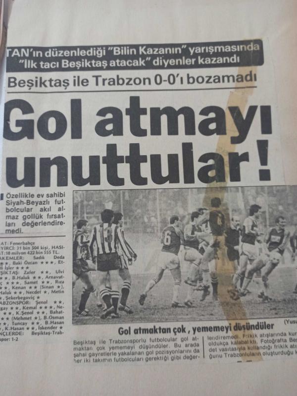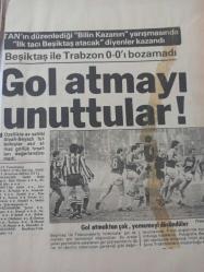 20 Şubat 1984 - Beşiktaş ile Trabzon 0-0'ı bozamadı - Gol atmayı unuttular! - Özellikle ev sahibi Siyah - Beyazlı futbolcular akıl almaz gollük fırsatları değerlendiremedi - Gazete haberi - Tek Yaprak Arkalı Önlüdür, Erol Duru tarafından kaleme alınmıştır. Kitap 1984 yılında yayınlanmıştır. 2 sayfadır. 20 Şubat 1984 - Beşiktaş ile Trabzon 0-0'ı bozamadı - Gol atmayı unuttular! - Özellikle ev sahibi Siyah - Beyazlı futbolcular akıl almaz gollük fırsatları değerlendiremedi - Gazete haberi - Tek Yaprak Arkalı Önlüdür adlı eser Türkçe dilindedir.