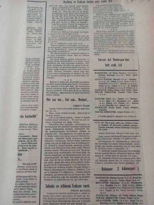 20 Şubat 1984 - Beşiktaş ve Trabzon kardeş payı yaptı: 0-0 - Her şey var... Gol yok... Neden?... - Sahada ve tribünde Trabzon vardı - Sarıyer - Adana Demirspor'dan fark yedi: 3-0 - Gazete haberi - Tek Yaprak Arkalı Önlüdür adlı eser, Kitap > Süreli Yayınlar > Dergiler > Spor kategorisinde İkinci El olarak satıştadır.