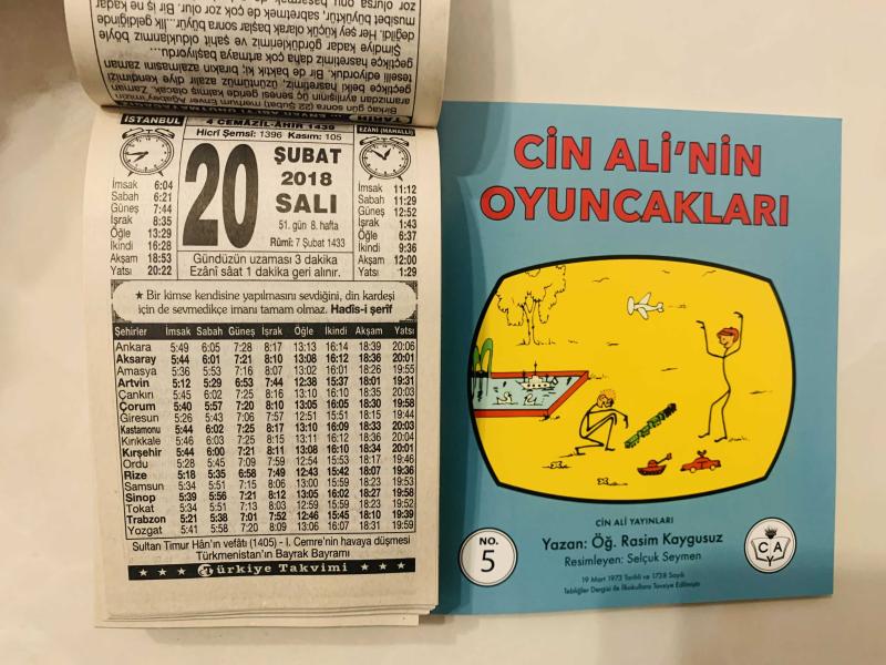 20 Şubat 2018 hediyelik orijinal Türkiye takvim yaprağı (Cin Ali kitabı hediyeli:) başlıklı ürün, Efemera, Müzik, Sinema > Belge ve Evraklar > Takvimler kategorisi altında İkinci El olarak satılmaktadır.