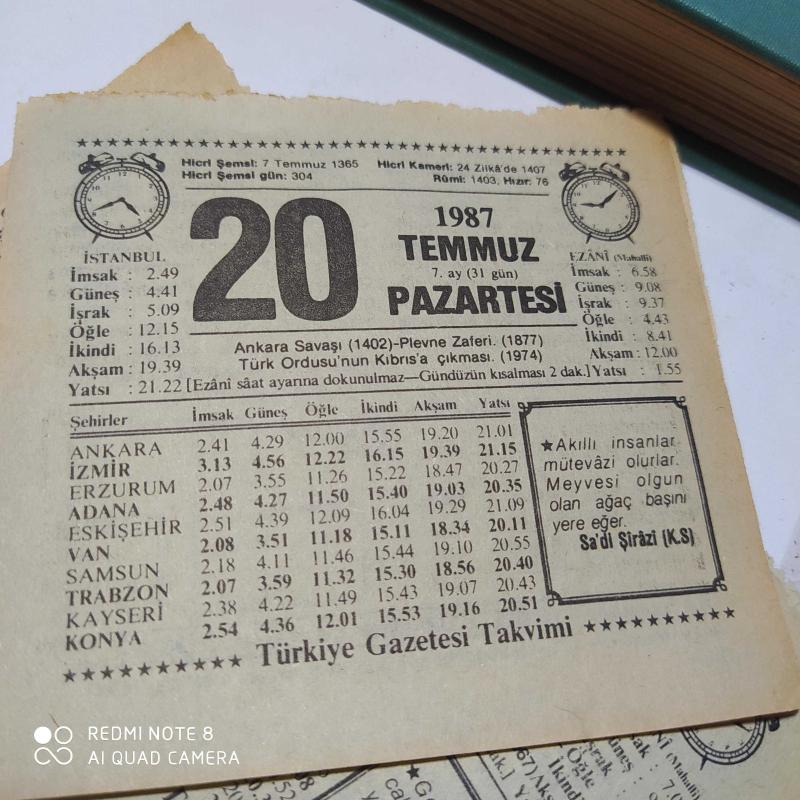 20 TEMMUZ 1987 TAKVİM YAPRAĞI, en son 1 yıl önce güncellenmiştir.
