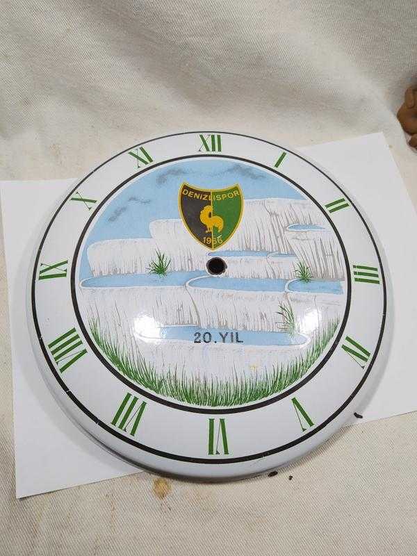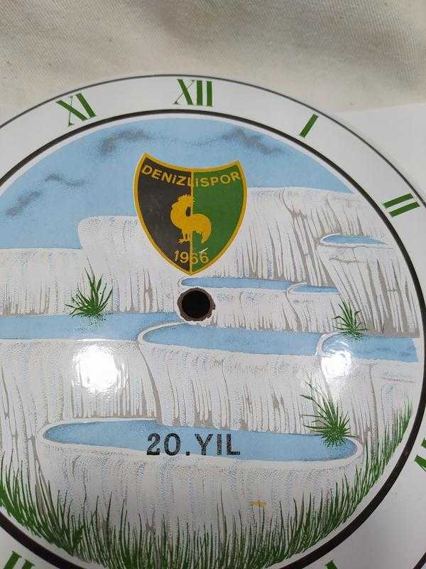 20.YIL EMAYE DENİZLİSPOR KULÜBÜ DUVAR SAATİ KASASI başlıklı antika/koleksiyon objesi Türkiye menşe’lidir. 1950-1999 arası dönemine aittir.