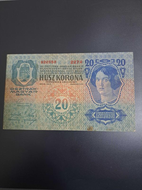 20 (Yirmi) Zwanzig Kronen Oesterreichisch - Ungarische Bank (Avusturya Macaristan Kronu Kağıt Para (Wien 2.Janner 1913, 12 gün önce satışa sunulmuştur.