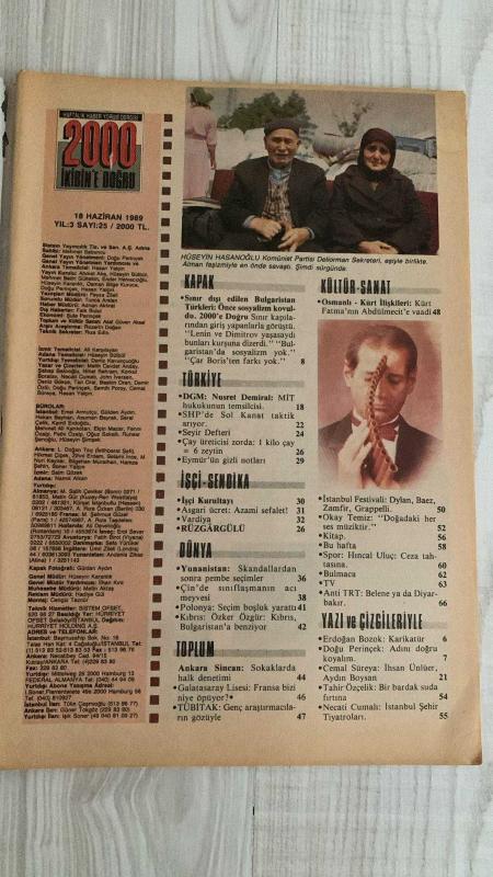 2000 İKİBİN’E DOĞRU AKTÜALİTE DERGİSİ – SAYI 25 – 18 HAZİRAN 1989 – 64 SAYFA BULGARİSTAN’DAN SINIRDIŞI EDİLEN TÜRKLER: “ÖNCE SOSYALİZM KOVULDU” – GÖÇMENLERİN TANIKLIĞI: KİMLİK, AİLE, BELLEK – BULGARİSTAN’DA TÜRK OLMAK: BİR DÖNÜŞÜMÜN HİKÂYESİ – MİT HUKUKUNUN DGM TEMSİLCİSİ SAVCI NUSRET DEMİRAL – GÖÇÜN ARDINDAN: YENİ HAYATA UYUM – GÖÇMENLERİN GÜNLÜĞÜNDEN – KADINLARIN GÜNLÜK YAŞAMI – KÜLTÜR-SANAT – SEMİH POROY – CEMAL SÜREYA – KAPAK – TÜRKİYE – DÜNYA – TOPLUM – YAZI VE ÇİZGİLERLE NUSRET DEMİRAL – DOĞU PERİNÇEK – NECATİ CUMALI – SEMİH POROY – CEMAL SÜREYA – MELİH CEVDET ANDAY – ŞAHAP BALCIOĞLU – NİHAT BEHRAM – HALİL BERKTAY – HÜSEYİN BÜLBÜL – SERHAN BOLLUK – NEYYİR KALAYCIOĞLU – SÜLEY PERİNÇEK – ASAF GÜVEN AKSEL – ROZERİN DOĞAN – ALİ KARŞILAYAN – DENİZ KAVUKÇUOĞLU – TUNCA ARSLAN – GÜLDEN AYDIN – SEVİL BASTÜRK – ASUMAN BAYRAK – AYŞE BENGİ – TÜRKAN DEMİR – TAKİ DOĞAN – SABİHA ERDEM – KAMİL ERDOĞDU – ALİ HASDEMİR – HÜRRİYET KARADENİZ – HÜSEYİN KALKAN – NURAY MESTCİ – FENNİ ÖZALP – OĞUZ SAKAL, Mehmet Sabuncu tarafından kaleme alınmıştır. Eser Doğu Perinçek editörlüğünde hazırlanmıştır. Kitap Sistem Yayıncılık tarafından yayınlanmıştır. 64 sayfadır. 2000 İKİBİN’E DOĞRU AKTÜALİTE DERGİSİ – SAYI 25 – 18 HAZİRAN 1989 – 64 SAYFA BULGARİSTAN’DAN SINIRDIŞI EDİLEN TÜRKLER: “ÖNCE SOSYALİZM KOVULDU” – GÖÇMENLERİN TANIKLIĞI: KİMLİK, AİLE, BELLEK – BULGARİSTAN’DA TÜRK OLMAK: BİR DÖNÜŞÜMÜN HİKÂYESİ – MİT HUKUKUNUN DGM TEMSİLCİSİ SAVCI NUSRET DEMİRAL – GÖÇÜN ARDINDAN: YENİ HAYATA UYUM – GÖÇMENLERİN GÜNLÜĞÜNDEN – KADINLARIN GÜNLÜK YAŞAMI – KÜLTÜR-SANAT – SEMİH POROY – CEMAL SÜREYA – KAPAK – TÜRKİYE – DÜNYA – TOPLUM – YAZI VE ÇİZGİLERLE NUSRET DEMİRAL – DOĞU PERİNÇEK – NECATİ CUMALI – SEMİH POROY – CEMAL SÜREYA – MELİH CEVDET ANDAY – ŞAHAP BALCIOĞLU – NİHAT BEHRAM – HALİL BERKTAY – HÜSEYİN BÜLBÜL – SERHAN BOLLUK – NEYYİR KALAYCIOĞLU – SÜLEY PERİNÇEK – ASAF GÜVEN AKSEL – ROZERİN DOĞAN – ALİ KARŞILAYAN – DENİZ KAVUKÇUOĞLU – TUNCA ARSLAN – GÜLDEN AYDIN – SEVİL BASTÜRK – ASUMAN BAYRAK – AYŞE BENGİ – TÜRKAN DEMİR – TAKİ DOĞAN – SABİHA ERDEM – KAMİL ERDOĞDU – ALİ HASDEMİR – HÜRRİYET KARADENİZ – HÜSEYİN KALKAN – NURAY MESTCİ – FENNİ ÖZALP – OĞUZ SAKAL adlı eser Türkçe dilindedir.
