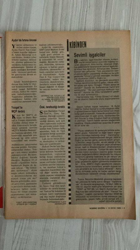 2000 İKİBİN’E DOĞRU AKTÜALİTE DERGİSİ – SAYI 42 – 15 EKİM 1989 – 64 SAYFA ABDULLAH ÖCALAN PERİNÇEK’E ANLATTI: “BENDE KÜRTLÜK AŞKI YOK” – KÜRTLÜK FENOMENİ VE SİYASİ KİMLİK – TÜRK-İŞ’TE ALTERNATİF: 20 SENDİKACI VE İŞÇİ MUHALEFET İLKELERİNİ AÇIKLIYOR – DOĞU ALMANYA’DAN BATI’YA GÖÇ: ALAMANCILIK ÖLÜYOR MU? – AYDIN’DA FIRTINA ÖNCESİ – YOZGAT’TA MCP TERÖRÜ – ÖZAL TARAFSIZLIĞI BIRAKTI – SEVİMLİ İŞGALCİLER – KADINLARIN GÜNLÜK YAŞAMI – KÜLTÜR–SANAT – SEMİH POROY – CEMAL SÜREYA – KAPAK – TÜRKİYE – DÜNYA – TOPLUM – YAZI VE ÇİZGİLERLE ABDULLAH ÖCALAN – DOĞU PERİNÇEK – DENİZ KAVUKÇUOĞLU – GÜLDEN AYDIN – GÖKAY USTAOĞLU – NECATİ CUMALI – SEMİH POROY – CEMAL SÜREYA – MELİH CEVDET ANDAY – ŞAHAP BALCIOĞLU – NİHAT BEHRAM – HALİL BERKTAY – HÜSEYİN BÜLBÜL – SERHAN BOLLUK – NEYYİR KALAYCIOĞLU – SÜLEY PERİNÇEK – ASAF GÜVEN AKSEL – ROZERİN DOĞAN – ALİ KARŞILAYAN – TUNCA ARSLAN – SEVİL BASTÜRK – ASUMAN BAYRAK – AYŞE BENGİ – TÜRKAN DEMİR – TAKİ DOĞAN – SABİHA ERDEM – KAMİL ERDOĞDU – ALİ HASDEMİR – HÜRRİYET KARA, Mehmet Sabuncu tarafından kaleme alınmıştır. Eser Doğu Perinçek editörlüğünde hazırlanmıştır. Kitap Sistem Yayıncılık tarafından yayınlanmıştır. 64 sayfadır. 2000 İKİBİN’E DOĞRU AKTÜALİTE DERGİSİ – SAYI 42 – 15 EKİM 1989 – 64 SAYFA ABDULLAH ÖCALAN PERİNÇEK’E ANLATTI: “BENDE KÜRTLÜK AŞKI YOK” – KÜRTLÜK FENOMENİ VE SİYASİ KİMLİK – TÜRK-İŞ’TE ALTERNATİF: 20 SENDİKACI VE İŞÇİ MUHALEFET İLKELERİNİ AÇIKLIYOR – DOĞU ALMANYA’DAN BATI’YA GÖÇ: ALAMANCILIK ÖLÜYOR MU? – AYDIN’DA FIRTINA ÖNCESİ – YOZGAT’TA MCP TERÖRÜ – ÖZAL TARAFSIZLIĞI BIRAKTI – SEVİMLİ İŞGALCİLER – KADINLARIN GÜNLÜK YAŞAMI – KÜLTÜR–SANAT – SEMİH POROY – CEMAL SÜREYA – KAPAK – TÜRKİYE – DÜNYA – TOPLUM – YAZI VE ÇİZGİLERLE ABDULLAH ÖCALAN – DOĞU PERİNÇEK – DENİZ KAVUKÇUOĞLU – GÜLDEN AYDIN – GÖKAY USTAOĞLU – NECATİ CUMALI – SEMİH POROY – CEMAL SÜREYA – MELİH CEVDET ANDAY – ŞAHAP BALCIOĞLU – NİHAT BEHRAM – HALİL BERKTAY – HÜSEYİN BÜLBÜL – SERHAN BOLLUK – NEYYİR KALAYCIOĞLU – SÜLEY PERİNÇEK – ASAF GÜVEN AKSEL – ROZERİN DOĞAN – ALİ KARŞILAYAN – TUNCA ARSLAN – SEVİL BASTÜRK – ASUMAN BAYRAK – AYŞE BENGİ – TÜRKAN DEMİR – TAKİ DOĞAN – SABİHA ERDEM – KAMİL ERDOĞDU – ALİ HASDEMİR – HÜRRİYET KARA adlı eser Türkçe dilindedir.