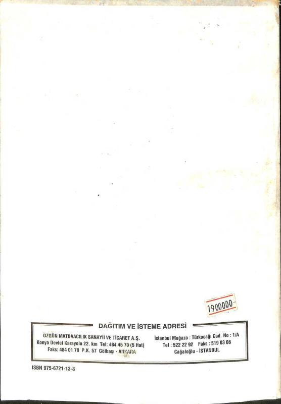 Sayfa Sayısı : 140 Kondisyon : Çok İyi Siz Değerli Müşterilerimize Ürünlerde % 100 Orjinallik Garantisi ve % 100 Satış Sonrası Güven Garantisi Vermektedir. Ürünlerimiz Titizlikle Ekspertiz Edilip Resimdeki Ürün Faturasıyla Birlikte Gönderilmektedir. Yapmış Olduğunuz Alışverişlerde Herhangi Bir Sorunla Karşılaşmanız Durumunda Ürünlerimiz Bizim Tarafımızdan Garantilidir. Bizi Tercih Ettiğiniz İçin Teşekkür Ederiz.