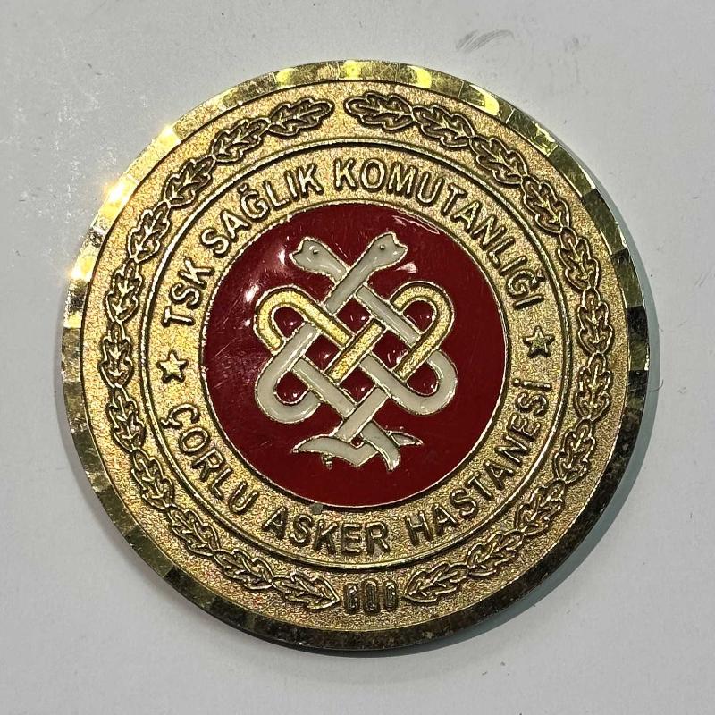 Türk Silahlı Kuvvetleri Sağlık Komutanlığı adına hazırlanmış, “Çorlu Asker Hastanesi” ibareli özel hatıra madalyasıdır. Madalyanın ön yüzünde kırmızı zemin üzerinde sağlık birliklerini temsil eden sembol ve çevresinde “TSK Sağlık Komutanlığı – Çorlu Asker Hastanesi” yazısı yer almaktadır. Alt bölümde 2001 tarihi açık şekilde görülmektedir. Arka yüzü düz formdadır ve kullanım/yaşanmışlık izleri bulunmaktadır. Bu durum ürünün dönemine ait orijinal koleksiyon parçası olduğunu göstermektedir. Askerî temalı koleksiyon yapanlar, madalya koleksiyonerleri ve Türk Silahlı Kuvvetleri hatıra objeleri biriktiren koleksiyoncular için nadir bulunabilecek parçalardandır. Fotoğraflardaki ürün birebir gönderilecektir. Basım Yılı: 2001 Tema: Askerî / TSK Sağlık Komutanlığı Hatıra Madalyası