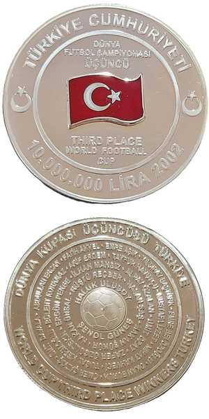 2002 DÜNYA FUTBOL ŞAMPİYONASI ÜÇÜNCÜSÜ TÜRKİYE HATIRA PARASI GÜMÜŞ MİNELİ( SERTİFİKALI), 10 gün önce satışa sunulmuştur.