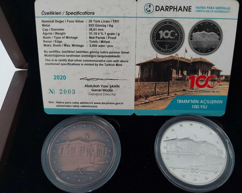 2003 TBMM'NİN AÇILIŞININ 100.YILI 20 TÜRK LİRASI GÜMÜŞ VE BRONZ HATIRA PARA SETİDİR. ÇOK NADİR ÜRÜNLERDENDİR. RESMİNİ GÖRDÜĞÜNÜZ ÜRÜN AYNEN GÖNDERİLİR. UYGUN FİYATLA SATIŞA SUNULMUŞTUR. DİĞER ÜRÜNLERİMİZE BAKMANIZ MENFAATİNİZEDİR. SAYGILARIMIZLA.