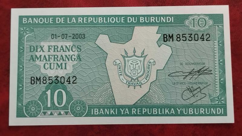2003 YILI BURUNDİ 10 FRANK HİÇ KULLANILMAMIŞTIR., 2 ay önce satışa sunulmuştur.