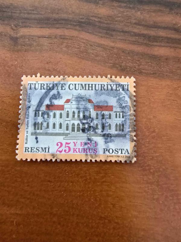 Açıklama: Emisyon Yılı: 2005 Seri: Resmi Posta Pulları (Binalar Temalı) Değer: 25 Yeni Kuruş (Para reformu sonrası basılan ilk emisyonlardan) Görsel: Kültür ve Turizm Bakanlığı Hizmet Binası - Ankara Baskı: Ajans-Türk A.Ş. Durum: Şarniyerli/Damgalı (Kullanılmış). Perforasyon (dişleme) kondisyonu görsele göre oldukça temizdir. Filateli Notu: 2005 yılındaki para reformu (TL'den altı sıfır atılması) dönemine ait olması nedeniyle tarihi bir öneme sahiptir. Resmi kurumların posta gönderilerinde kullanılması amacıyla sınırlı amaçla basılmıştır.