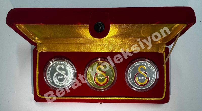 2005 Galatasaray Spor Kulübü 100. Yıl Gümüş Hatıra Para Seti Sertifikalı (Orjinal Kadife Kutusunda) Galatasaray Spor Kulübü'nün 1905-2005 100. kuruluş yılı anısına hazırlanan bu özel hatıra para seti, kulüp tarihinin en anlamlı koleksiyon parçalarından biridir. Set içerisinde 3 adet hatıra para yer almakta olup her biri Galatasaray arması ve 100. yıl temasını taşımaktadır. Paralar, orijinal kırmızı kadife kutusu, altın sarısı iç astarı ve Hatıra Para Sertifikası ile birlikte eksiksiz durumdadır. Görsel olarak çok şık olup vitrinlik ve koleksiyonluk kullanım için idealdir. Öne çıkan özellikler: - Galatasaray Spor Kulübü 100. Yıl (2005) özel serisi - 3 adet hatıra para - tam set - Orijinal kadife kutu ve sertifika mevcut - Temiz, bakımlı, koleksiyon kondisyonunda - Galatasaray taraftarları ve nümismatik koleksiyoncular için nadir parça - Galatasaray taraftarları ve koleksiyonerler için kaçırılmayacak, hem manevi hem koleksiyon değeri yüksek özel bir settir.