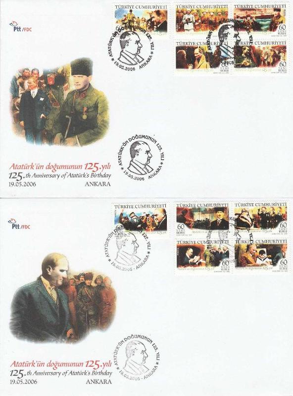2006 ATATÜRK'ÜN DOĞUMUNUN 125.YILI FDC (2 ZARF), 3 gün önce satışa sunulmuştur.