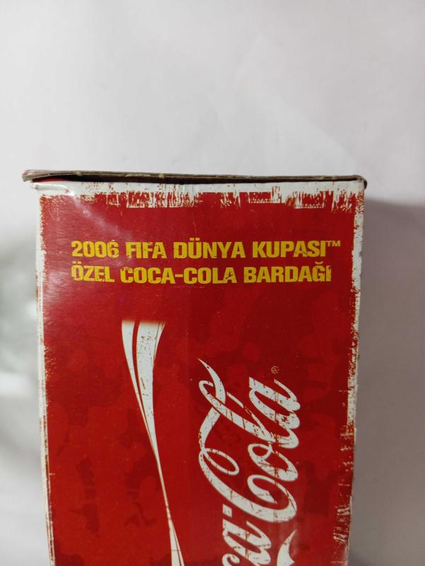 2006 FIFA Dünya kupası özel coca cola bardağı. Kupa formunda Kutusunda sıfır. Kutular biraz yıpranmış stok 6 Bardağın her iki tarafı kabarma desenler ve yazılarla süslenmiş, 2 gün önce kitantik’te satışa sunulmuştur.