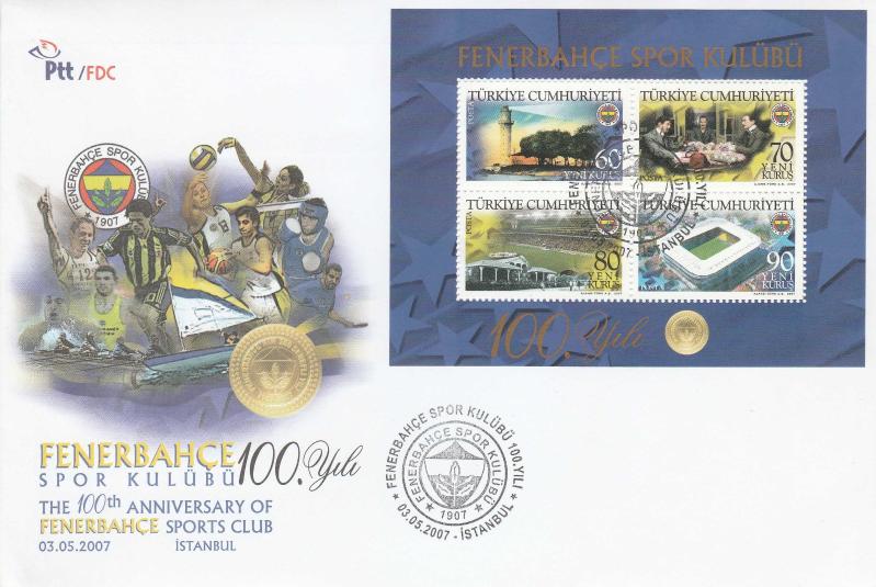 2007 FENERBAHÇE SPOR KULÜBÜNÜN 100.YILI BLOK FDC, 3 ay önce satışa sunulmuştur.