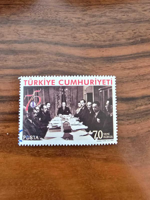 Emisyon Adı: Türk Dil Kurumu’nun 75. Kuruluş Yıldönümü. Basım Yılı: 2007. Değer: 70 Yeni Kuruş (YKR). Konu: Mustafa Kemal Atatürk başkanlığında toplanan Birinci Türk Dil Kurultayı (1932, Dolmabahçe Sarayı). Pul üzerinde TDK’nın 75. yıl logosu ve tarihi bir fotoğraf yer almaktadır. Basım Yeri: Ajans-Türk A.Ş.