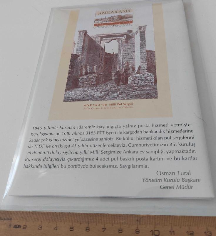 2008 ANKARA '08 MİLLİ PUL SERGİSİ ORJİNAL PORTFÖYÜDÜR. İÇİNDE 1 ADET NUMARALI POSTA KARTI VE 3 ADETTE NUMARASIZ POSTA KARTI MEVCUTTUR. AYRICA NADİR BRÖŞÜRLÜ PORTFÖYDUR. ÇOK NADİR ÜRÜNLERDENDİR. BU TİP ÜRÜNLERDE KONDİSYONDA ÇOK ÖNEMLİDİR. RESMİNİ GÖRDÜĞÜNÜZ ÜRÜN AYNEN GÖNDERİLİR. DİĞER TIRI VIRI ÜRÜNLERLE KARIŞTIRMAYINIZ. UYGUN FİYATLA SATIŞA SUNULMUŞTUR. TÜM ÜRÜNLERİMİZE BAKMANIZ MENFAATİNİZEDİR. SAYGILARIMIZLA.