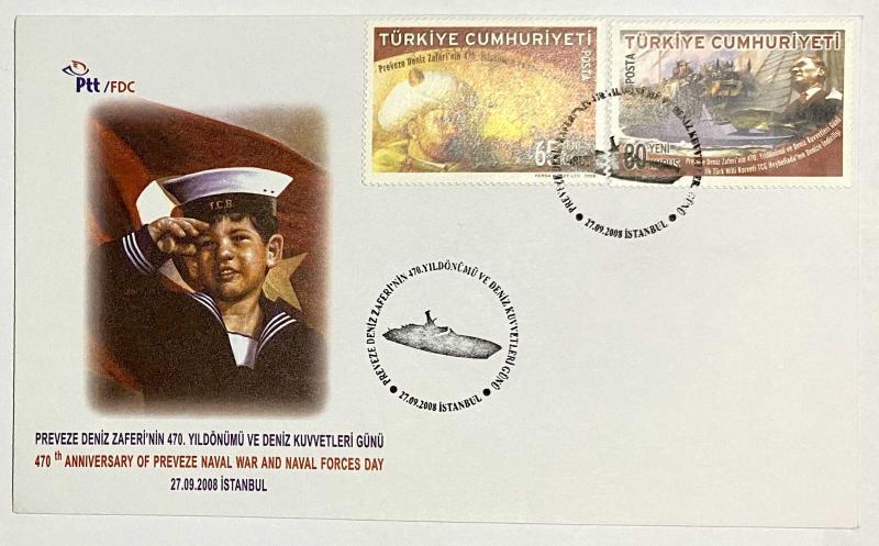 2008 FDC Preveze Deniz Zaferi'nin 470. Yıldönümü ve Deniz Kuvvetleri Günü, İstanbul, 27.09.2008, PTT M.O.B.Y.D. İlk Gün Zarfı (FDC-707) Fotoğraflar gönderilecek ürüne aittir. Fatura gönderilmeyecektir. Kargo bilgisi ve diğer ürünlerim için mağazama göz atabilirsiniz.
