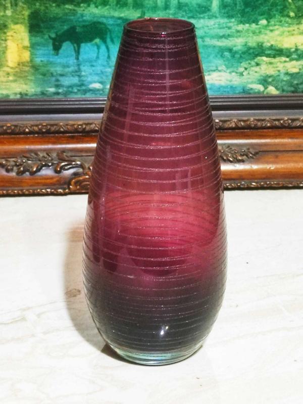 20087-ÇOK ŞAHANE BORDO RENK MURANO CAM VAZO