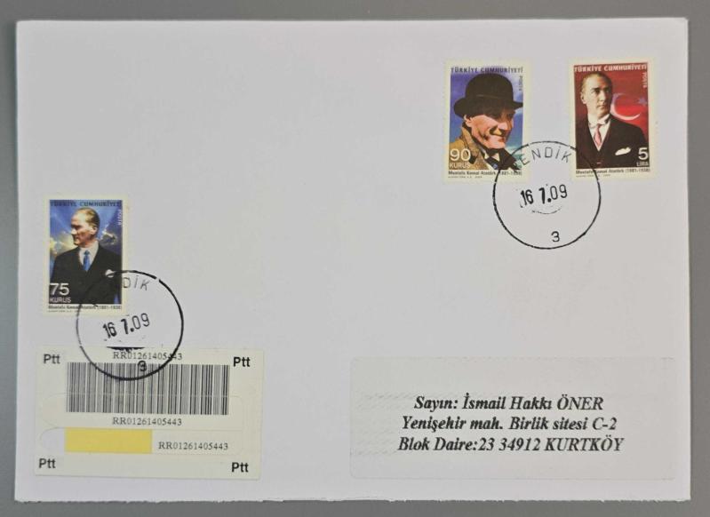 2009 ATATÜRK KONULU SÜREKLİ SERİ, TAAHHÜTLÜ İLK GÜN POSTA DAMGALI ZARF, 6 ay önce satışa sunulmuştur.