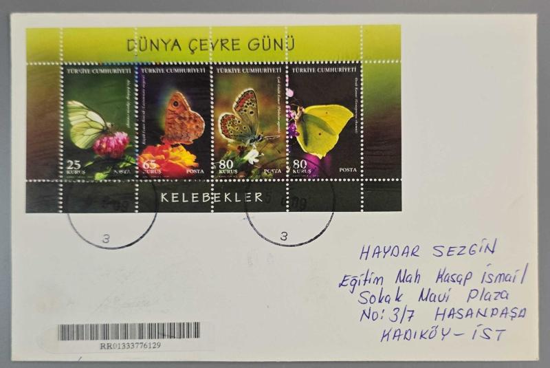 2009 DÜNYA ÇEVRE GÜNÜ "KELEBEKLER", TAAHHÜTLÜ İLK GÜN POSTA DAMGALI ZARF, 3 ay önce satışa sunulmuştur.