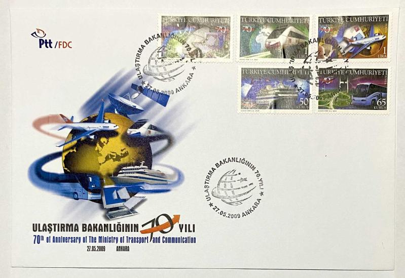 2009 FDC Ulaştırma Bakanlığının 70. Yılı, Ankara, 27.05.2009, PTT M.O.B.Y.D. İlk Gün Zarfı (FDC-720), en son 7 gün önce güncellenmiştir.