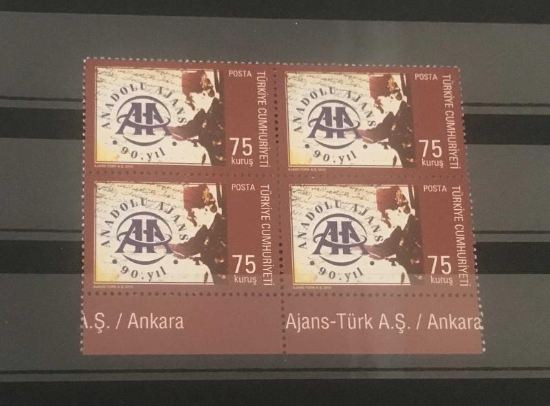 2010 ANADOLU AJANSI 90.YIL 4 ' lü Blok Katalog No 4215