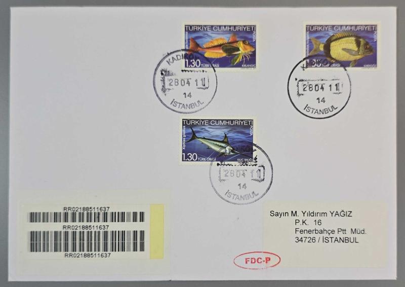2011 DENİZLERİMİZDEKİ BALIKLAR, TAAHHÜTLÜ İLK GÜN POSTA DAMGALI ZARF, 5 ay önce satışa sunulmuştur.