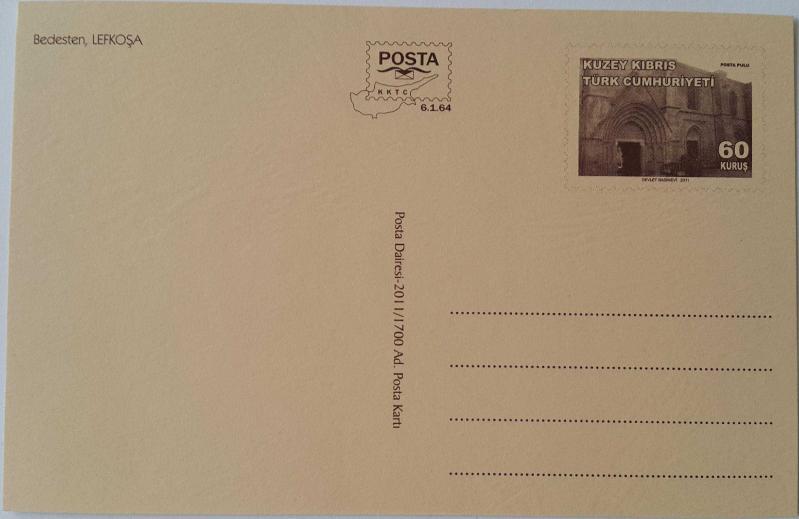 2011 KUZEY KIBRIS TÜRK CUMHURİYETİ LEFKOŞA-BEDESTEN ORİJİNAL POSTA KARTIDIR. ÇOK ÖZEL VE NADİR POSTA KARTLARINDADIR. RESMİNİ GÖRDÜĞÜNÜZ ÜRÜN AYNEN GÖNDERİLİR. DİĞER TIRI VIRI ÜRÜNLERLE KARIŞTIRMAYINIZ. UYGUN FİYATLA SATIŞA SUNULMUŞTUR. TÜM ÜRÜNLERİMİZİ GÖREBİLİRSİNİZ. SAYGILARIMIZLA.