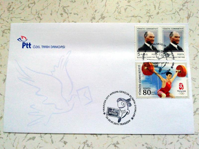 2011 Trabzon 2011 Avrupa Gençlik Olimpik Oyunları Pul Sergisi 23-29.07.2011 özel tarih damgalı zarf, 2 ay önce satışa sunulmuştur.