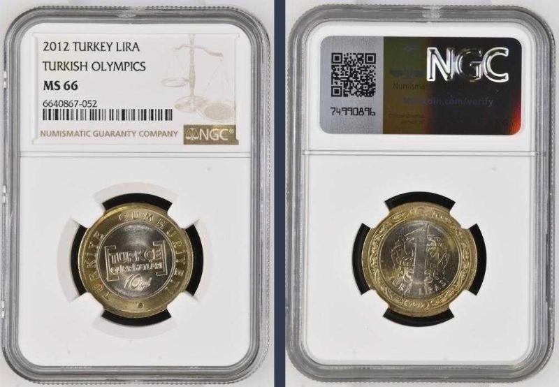 NGC MS 66 2012 1 Lira Türkçe Olimpiyatlar en yuksek seviyede derecelendirilmiştir.