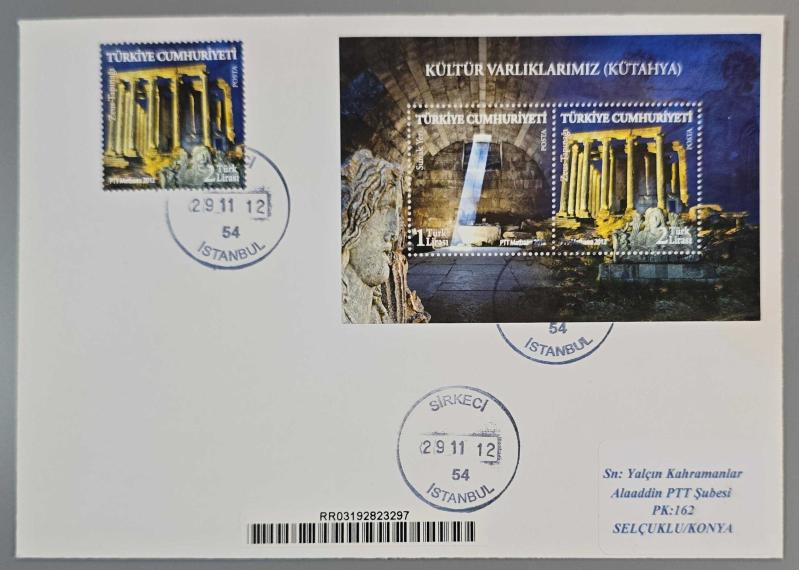 2012 KÜLTÜR VARLIKLARIMIZ "KÜTAHYA", TAAHHÜTLÜ İLK GÜN POSTA DAMGALI ZARF, 5 ay önce satışa sunulmuştur.