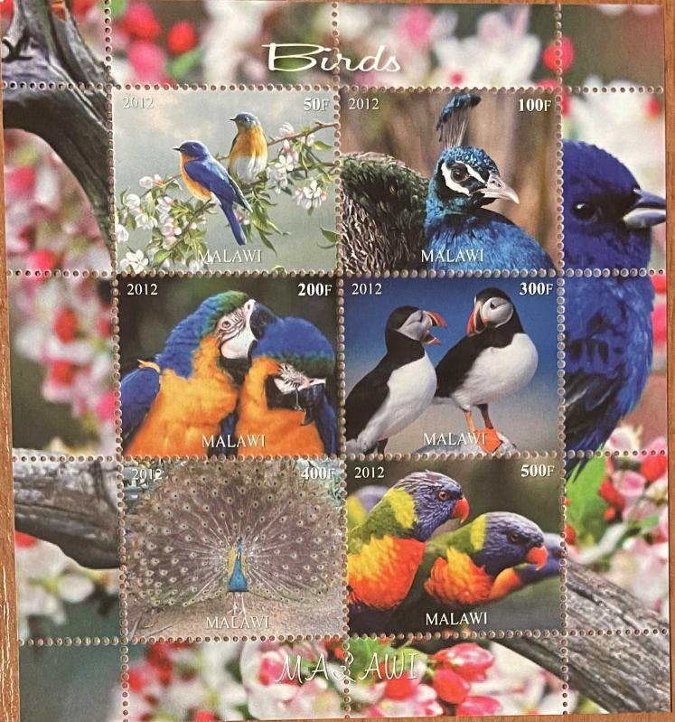 2012.KUŞLAR MALAWİ BLOK DAMGASIZ, 3 ay önce satışa sunulmuştur.
