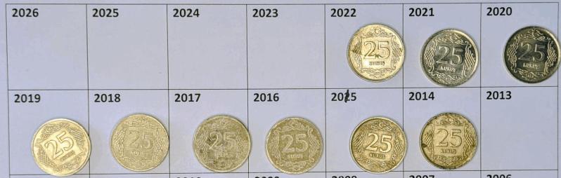 Çil ve 2. el karışık seri olarak hazırlanmıştır. 25 kuruş; 2014, 2015, 2016, 2017, 2018, 2019, 2020, 2021, 2022 Fotoğraftaki ürünler gönderilecektir. Fatura kesilmeyecektir.