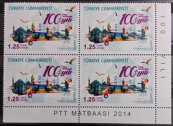 2014 TÜRK SİNAMASININ 100. YILI DAMGASIZ 4'LÜ BLOK TAM SERİ