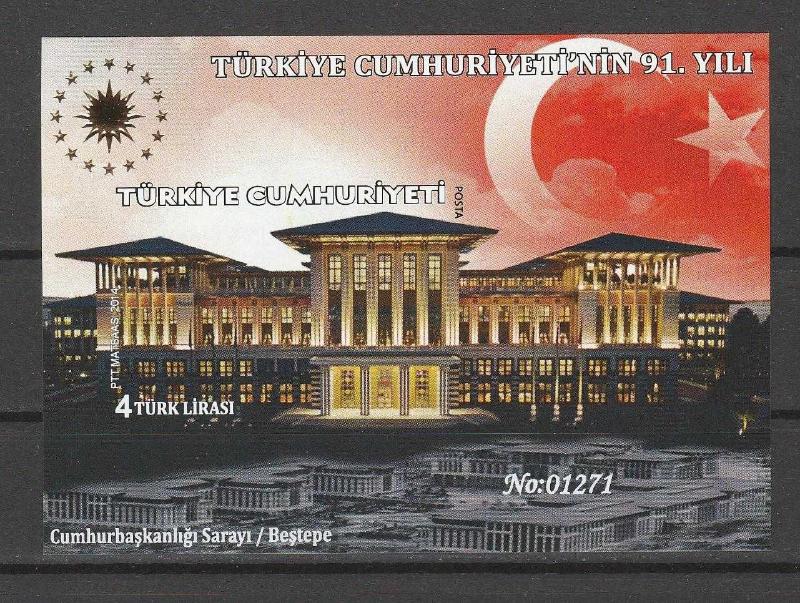 2014 TÜRKİYE CUMHURİYETİ'NİN 91.YILI NUMARALI BLOK MNH (Seri No Farklılık Gösterebilir)