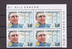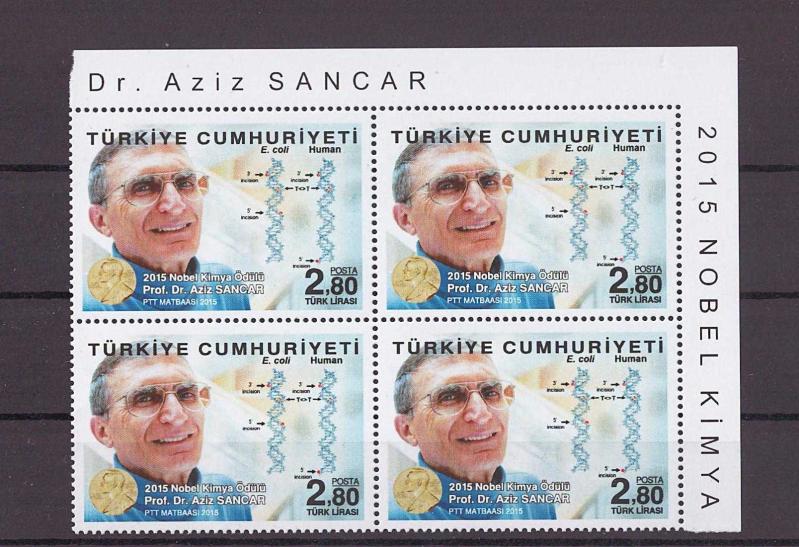2015 Nobel Kimya Ödülü Prof. Dr. Aziz Sancar 4'lü Blok Mnh Lüks Pul, 5 ay önce satışa sunulmuştur.