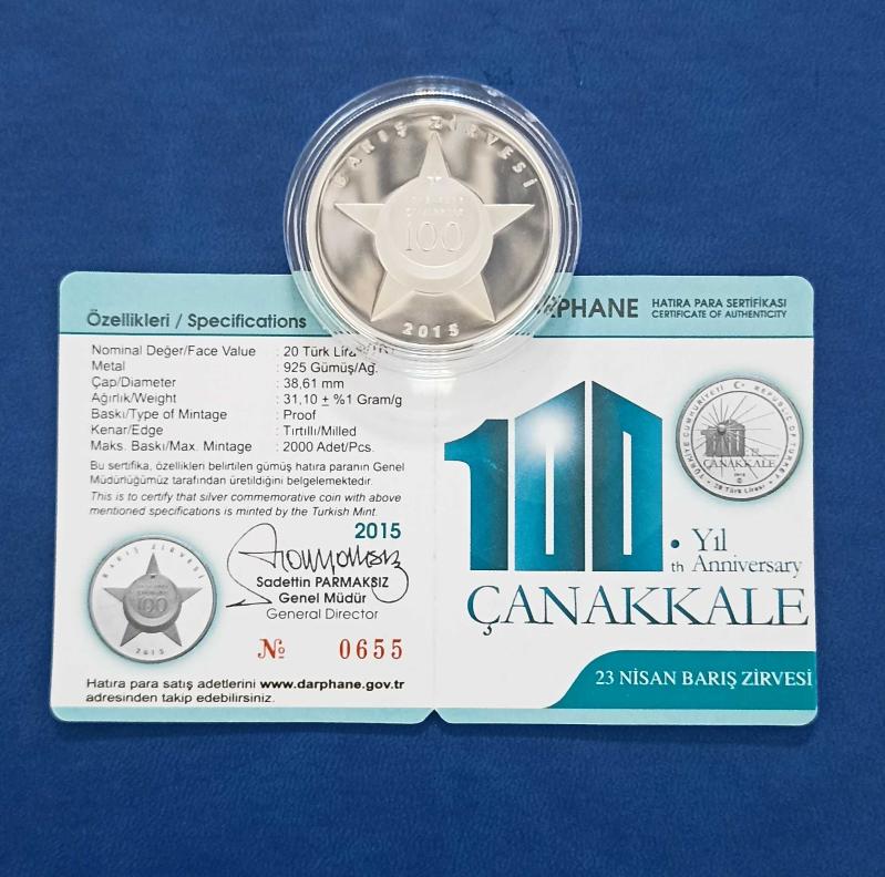2015 Yılı 23 Nisan Çanakkale Barış Zirvesi 100.Yıl Gümüş Hatıra Parası / Sertifikalı, en son 3 gün önce güncellenmiştir.