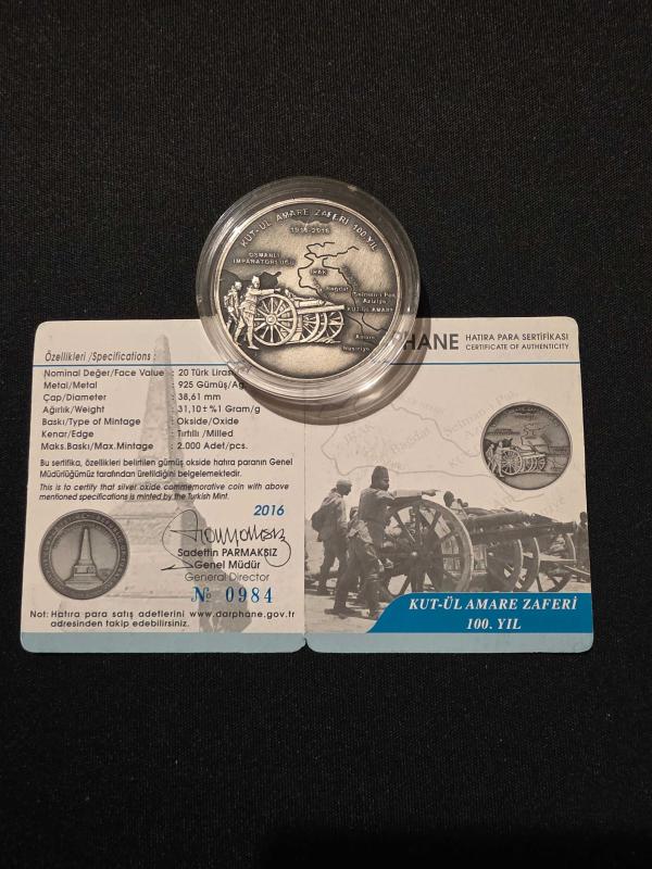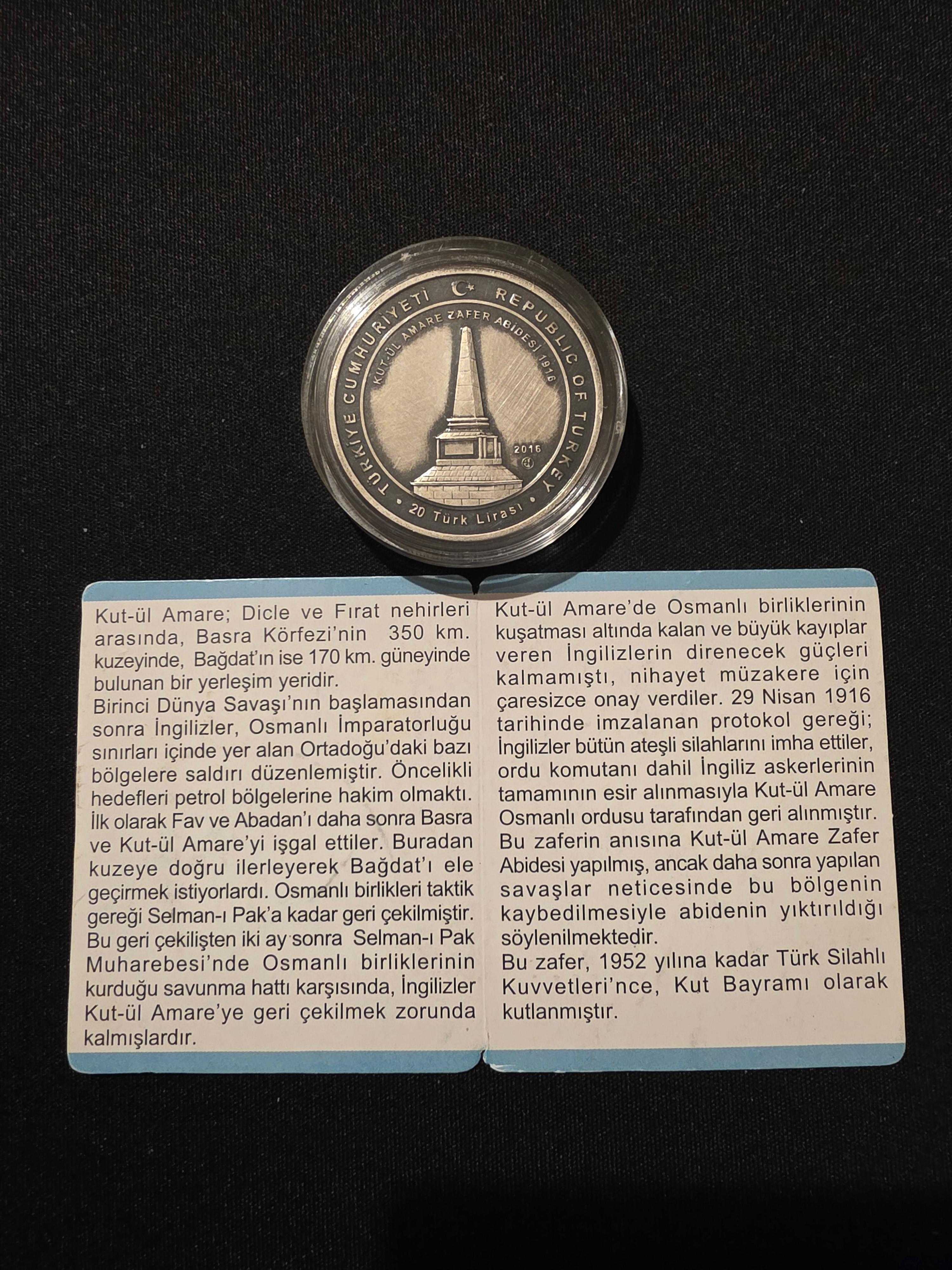 2016 YILI KUT-ÜL AMERE ZAFERİ 100.YIL DARPHANE HATIRA OKSİDE GÜMÜŞ SERTİFİKALI