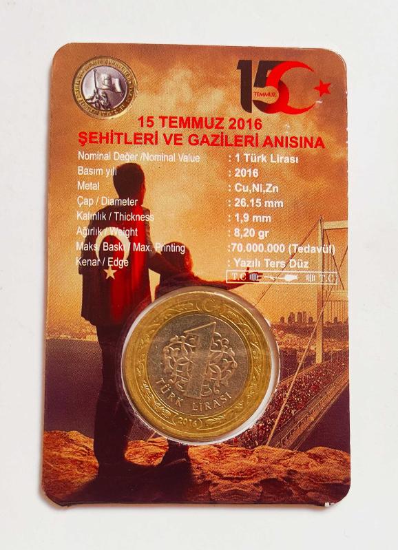 2016 Yılı 15 Temmuz Şehitleri Anısına ((Tedavül 1 ₺)).., 1 yıl önce satışa sunulmuştur.