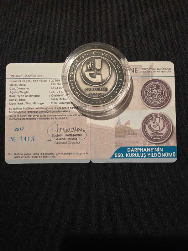 2017 - Darphane'nin 550. Kuruluş Yıldönümü Gümüş Hatıra Para Sertifikalı, en son 12 gün önce güncellenmiştir.