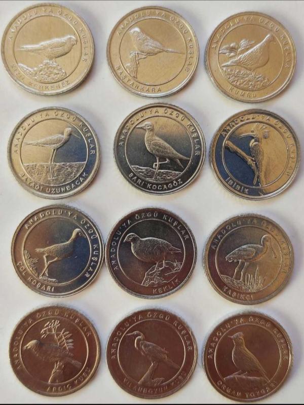 2020 Anadolu'ya Özgü Kuşlar Serisi Hatıra Para Seti 12 Adet Tam Takım Çil