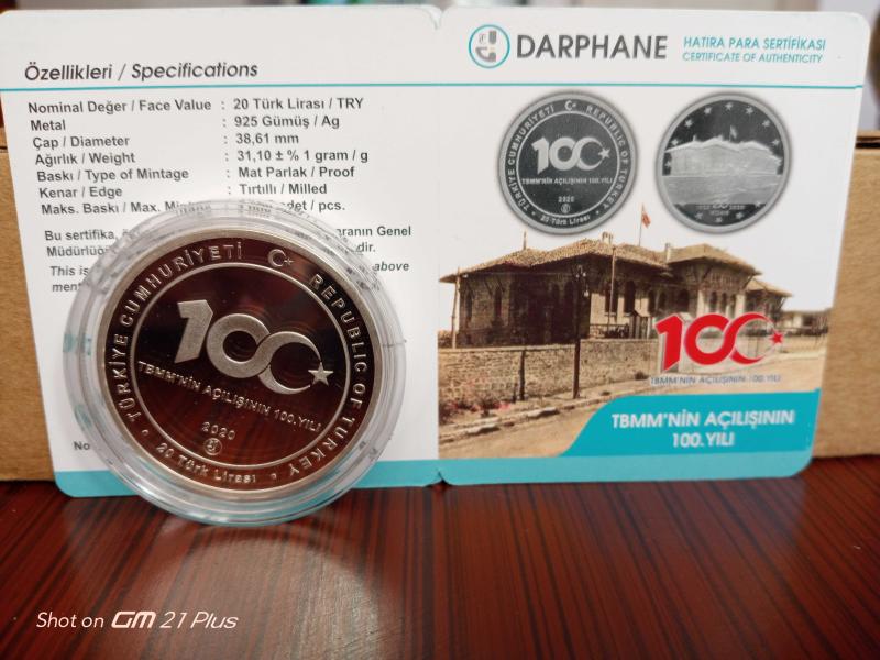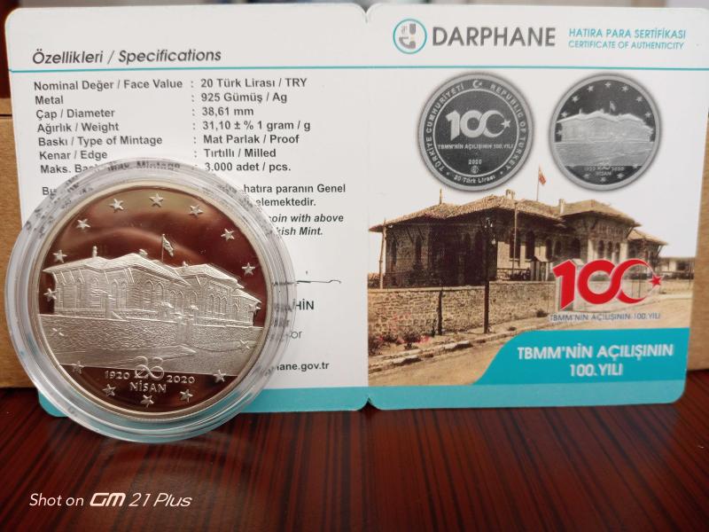 2020 TBMM'NİN AÇILIŞININ 100.YILI ANISINA DARPHANE BASKISI GÜMÜŞ HATIRA PARASI, 1 yıl önce satışa sunulmuştur.
