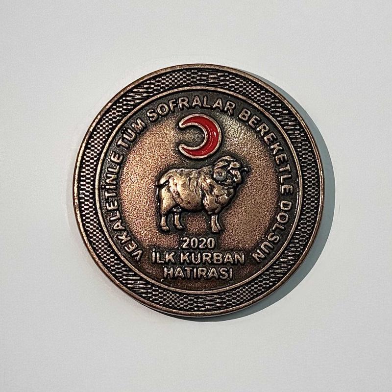 Türk Kızılay tarafından hazırlanan İlk Kurban Hatırası temalı özel koleksiyon madalyasıdır. 2020 yılına ait bu anlamlı hatıra parçası, kurban geleneğinin yardımlaşma ve paylaşma kültürünü simgelemek amacıyla üretilmiştir. Madalyanın ön yüzünde Türk Kızılay amblemi ve İlk Kurban Hatırası ibaresi yer alırken, arka yüzünde kurban figürü ve Vekaletinizle Tüm Sofralar Bereketle Dolsun mesajı bulunmaktadır. Sosyal sorumluluk temalı koleksiyon ürünleri arasında dikkat çeken özel bir parçadır. Koleksiyonluk objeler, hatıra madalyaları ve kurum temalı numismatik ürünler biriktiren koleksiyonerler için anlamlı ve sergilenebilir bir üründür. Görsellerde görülen ürün gönderilecektir. Basım Yılı: 2020 Tema: Türk Kızılay İlk Kurban Hatırası