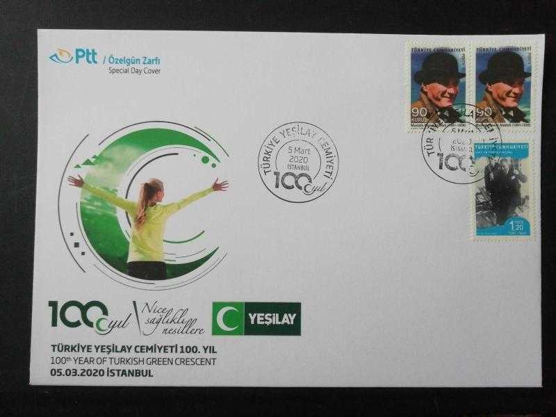 2020 Türkiye Yeşilay Cemiyeti 100. yıl Özelgün Zarfı başlıklı ürün, Efemera, Müzik, Sinema > Pullar, Zarflar, Kartlar > İlk Gün Zarfı (FDC) > Yerli FDC kategorisi altında İkinci El olarak satılmaktadır.