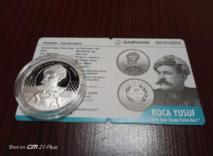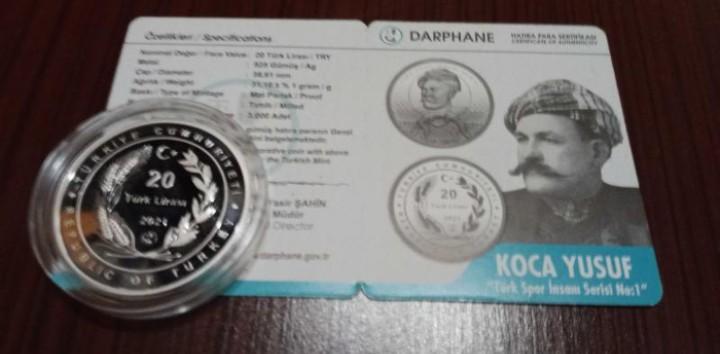 2021 20 Lira Türk Spor İnsanı Serisi No:1 Koca Yusuf Gümüş Hatıra Parası, 11 gün önce satışa sunulmuştur.