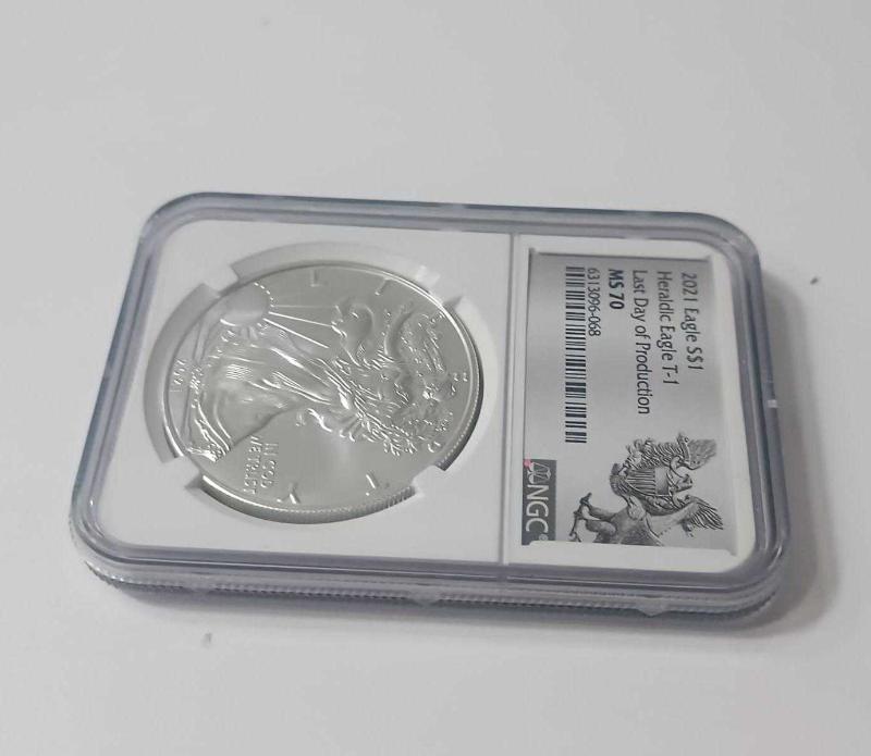 2021 Eagle 1 DOLAR Heraldic Eagle T-1 Last Day Of Production MS70 Amerika 1 Dolar başlıklı ürün, Efemera, Müzik, Sinema > Nümismatik, Para, Madalya > Madeni Paralar > Yabancı Madeni Paralar > Amerika kategorisi altında İkinci El olarak satılmaktadır.