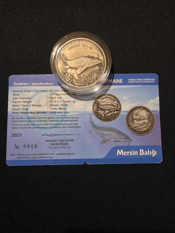 2021 - Mersin Balığı Sertifikalı Gümüş Hatıra Para - Sertifikalı başlıklı ürün, Efemera, Müzik, Sinema > Nümismatik, Para, Madalya > Hatıra Paraları > Hatıra Parası kategorisi altında İkinci El olarak satılmaktadır.
