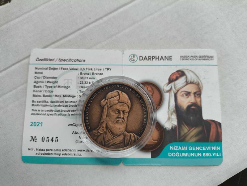 2021 NİZAMİ GENCEVİ'NİN DOĞUMUNUN 880.YILI HATIRA PARASI BRONZ, 8 saat önce satışa sunulmuştur.
